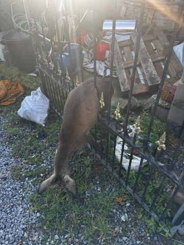 Maar, ook omheiningen in hun leefgebied kan levensbedreigend zijn. Zondag zat een ree vast in een sierhekken te Zarlardinge. Het zat gespiest op één van de metalen pinnen. Het arme dier stierf ter plaatse aan zijn verwondingen.