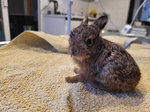 We hebben vandaag het eerste jonge haasje mogen verwelkomen van 2026. Een weekje vroeger dan vorig jaar. Helaas het slachtoffer van de kat. We zullen er alles aandoen om dit kleintje te helpen.